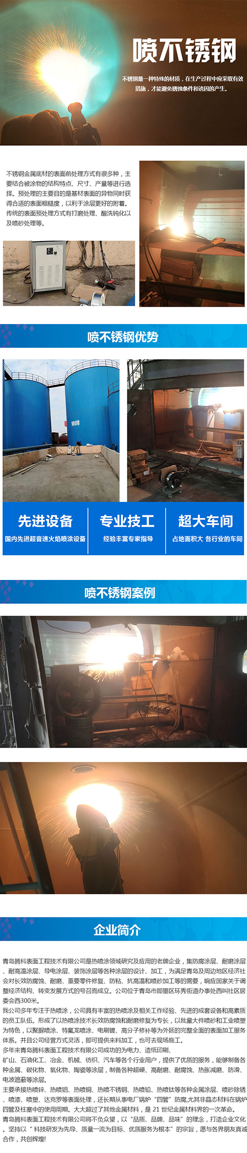 了解更多信息,請百度一下:騰科熱噴涂、騰科熱噴鋅、騰科熱噴鋁、騰科噴砂、騰科電弧噴涂、騰科水冷壁噴涂
